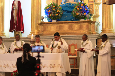 La celebración tuvo lugar en la parroquia Nuestra Señora de la Asunción en Tecamachalco, Puebla. Dicho festejo comenzó a la una de la tarde. Fue presidida por el padre Andrés Juan Hernández Hipatl, párroco de Nuestra Señora de la Asunción. concelebrada con: Leonardo Tepanecatl Sosa, primer vicario, Oscar Uriel Cabrera Rivera, segundo vicario, Louis Kivuya Muke, a.a., Superior Regional de los Agustinos de la Asunción, Joseph Mahamba, a.a., vicario de Santiago Apóstol en Tlilapan y Sébastien Bangandu Mwanza, a.a., vicario de San Andrés Totoltepec.