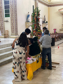 Al día siguiente, la comunidad se congregó en la iglesia para cambiar el vestido de San Santiago, incensar y bailar en torno al santo.
