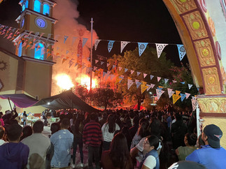 El tiempo en Tlilapan, tuvimos momentos agradables, como la asistencia a la feria de Santiago Apóstol, el santo patrono del pueblo. La feria empezó el 23 de julio y terminó el 28 de julio. Al terminar la misa del 23 de julio, se colocó una puerta decorativa y artesanal en frente de la puerta de la iglesia. Cuando le gente terminó de colocar la puerta, hubo una comida para todos, incluso cervecitas y un espectáculo con el torito pirotécnico para divertir a la gente.